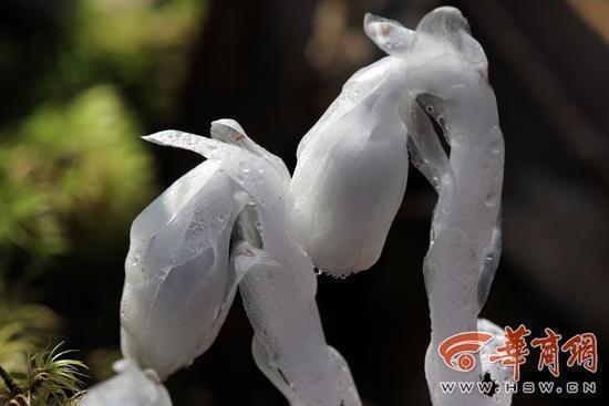 最近,周至殿镇田峪景区发现了一种独特的植物,株高十多厘米,一簇一簇地生长,浑身晶莹剔透,非常罕见!它就是水晶兰,也有着“幽灵草”“梦兰花”等名。